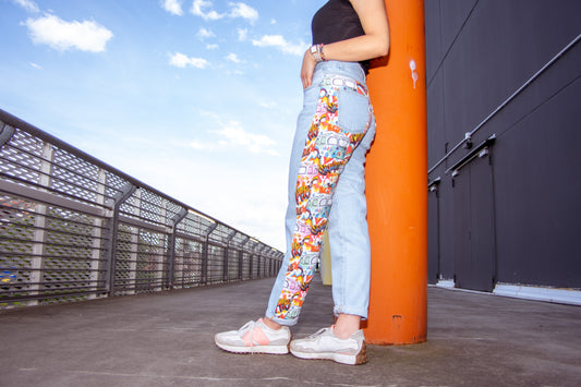 JEANS STAMPA FUMETTI DONNA CHIARI Made in Italy