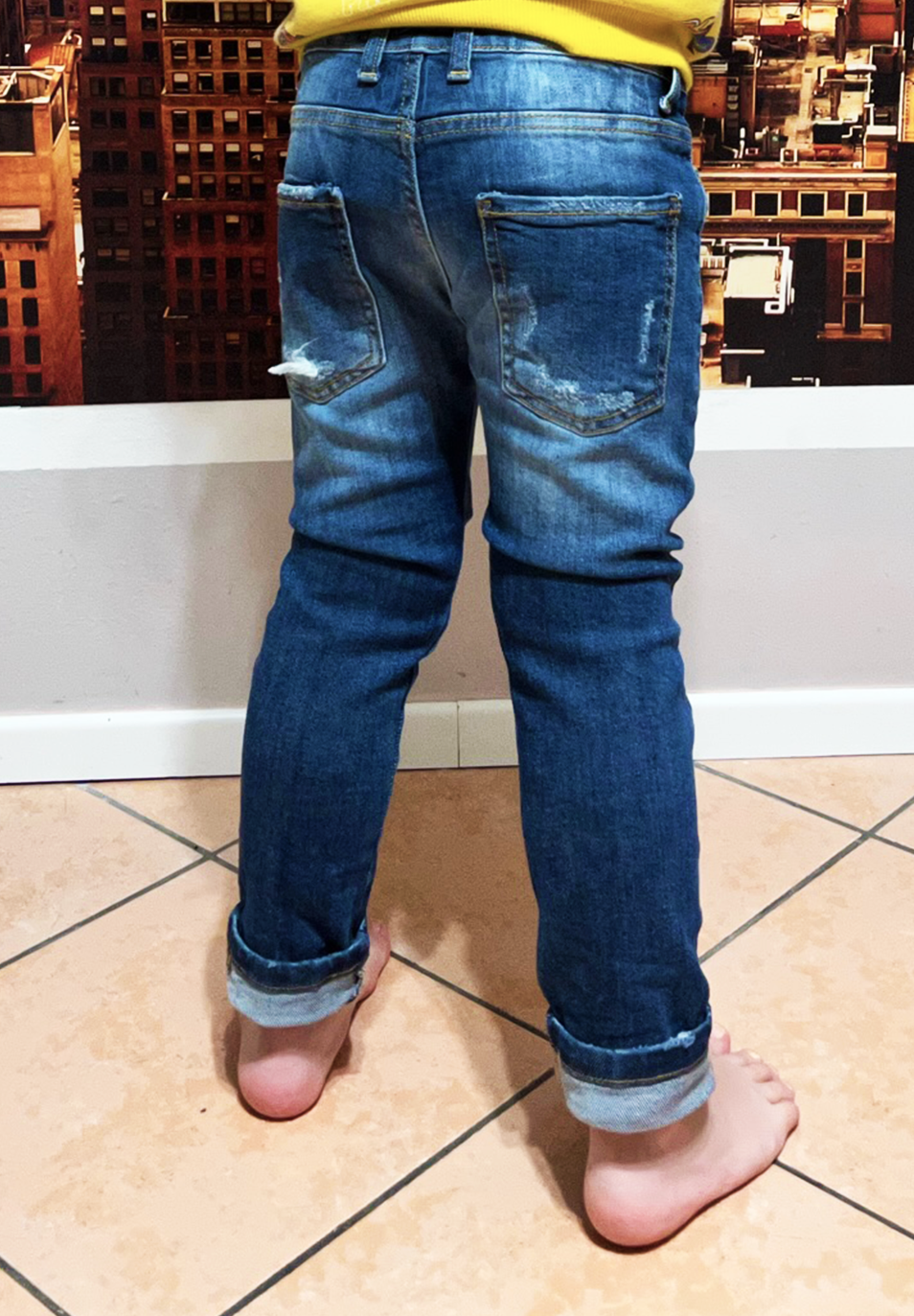 JEANS SCURO SLIM FIT Bimbo Con Graffi e Patch Leone Made in Italy