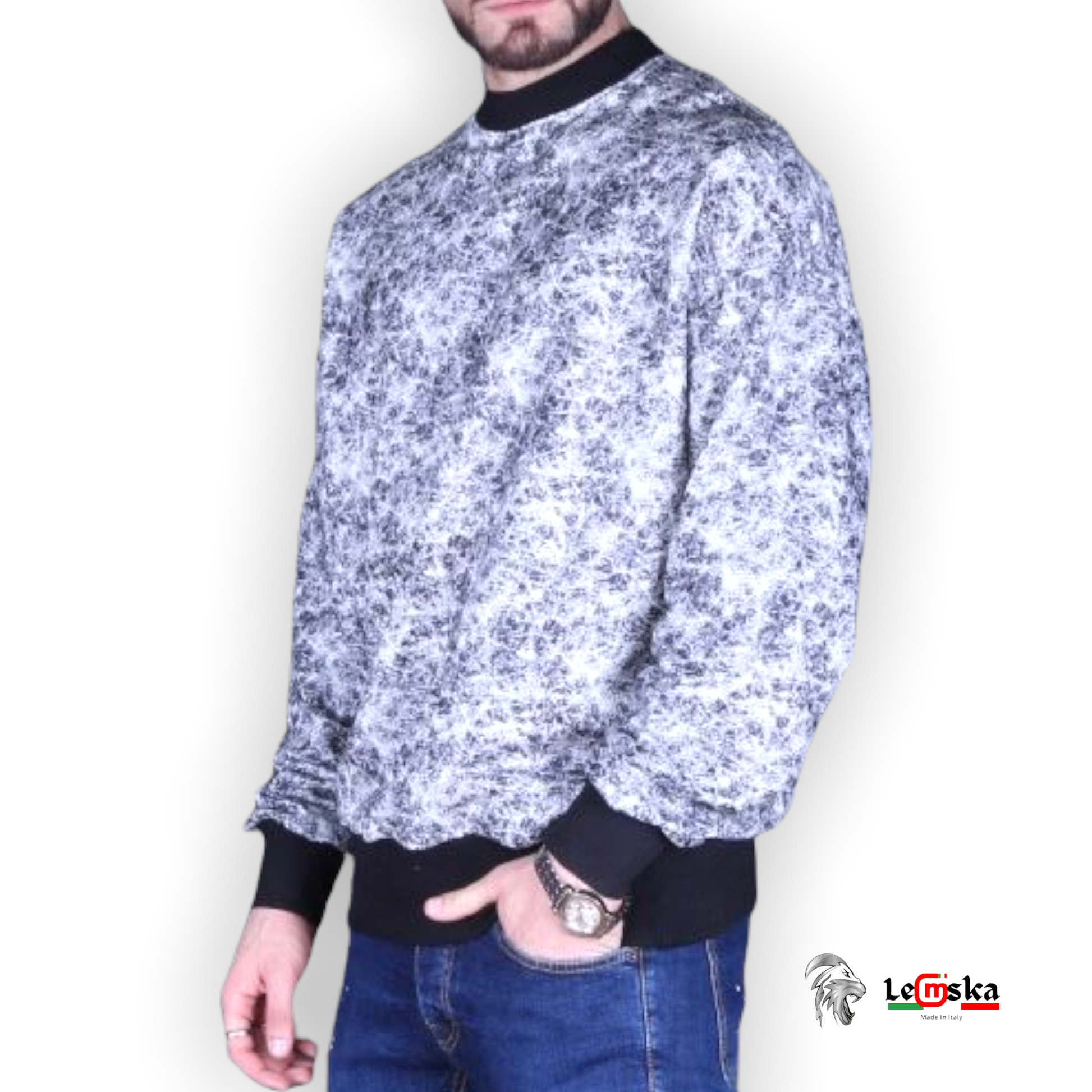 MAGLIONCINO IN FELPA DI COTONE UOMO con disegno effetto ragnatela. Molto comodo da indossare grazie alla sua elasticità. Prodotto interamente in Italia.