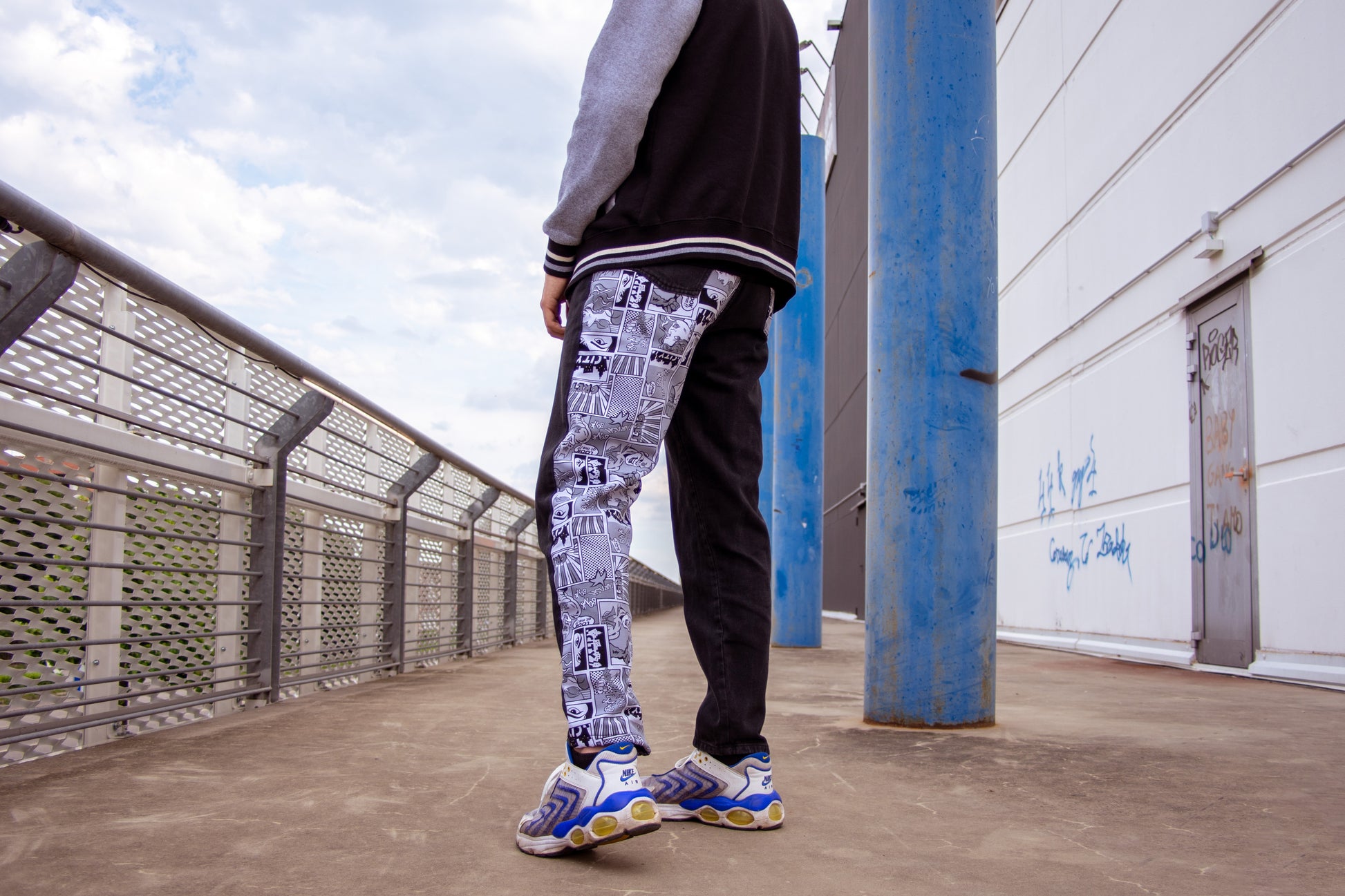 JEANS UOMO STAMPA GIORNALE NERI Made in Italy